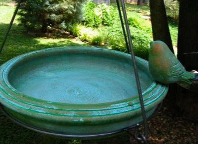 Ancient Graffiti Ceramic Hanging Bird Bath-Teal