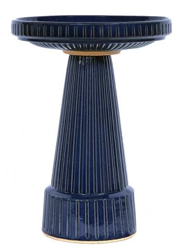 Tall Pedestal Bird Bath in deep Cobalt or Bellflower Blue entices feathered friends for necessary bathing and splash time!
