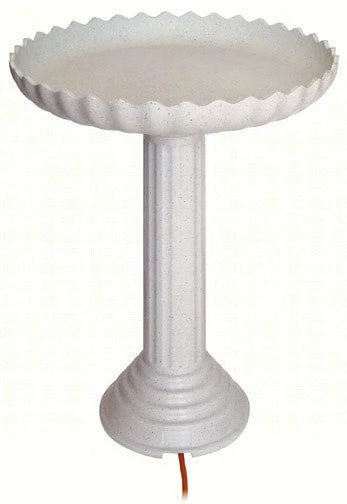Provides a consistent fresh water source to entice birds and keep them coming back. Heated Pedestal Birdbath features decorative scalloped edge that’s ideal for safe perching & landing, hidden electrical outlet means no unsightly cords dangling from the bath.
