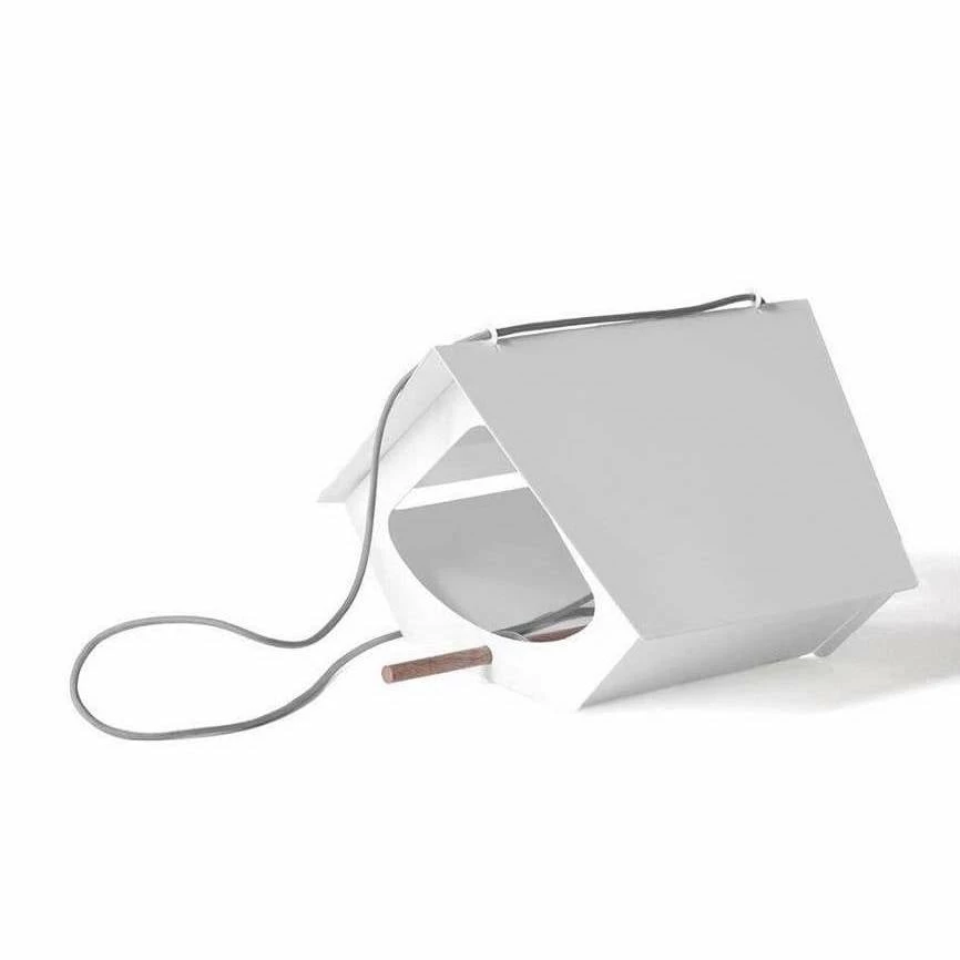Hanging Fly-Thru feeder is simple to fill and clean, crafted of recycled rust-proof aluminum with durable powder coat finish. Birdseed remains protected from weather in the house shape cavity. Complete with ample drainage, walnut perch and long para-cord hanger for quick placement, the BEEKMAN Bird Feeder by Shift will entice new feathered friends for many years to come. Holds approximately 1.5 lbs.