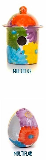 In 4 vibrant designs, pottery birdhouse & bird feeder entices smaller songbirds to your garden. Ideal for bluebirds, nuthatches, chickadees, titmice, wrens and others.