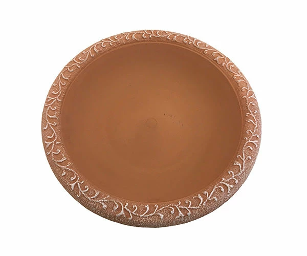 Large bird bath adds understated elegance and functionality to the garden. Features contrasting mat rim with textured design that entices birds for easy landing and perching.